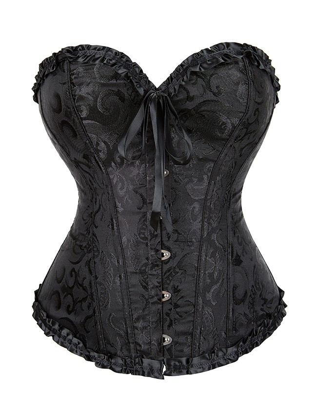 12 Pieces Soft Steel Bones Black Sexy Jacquard Palace Style Corset XS