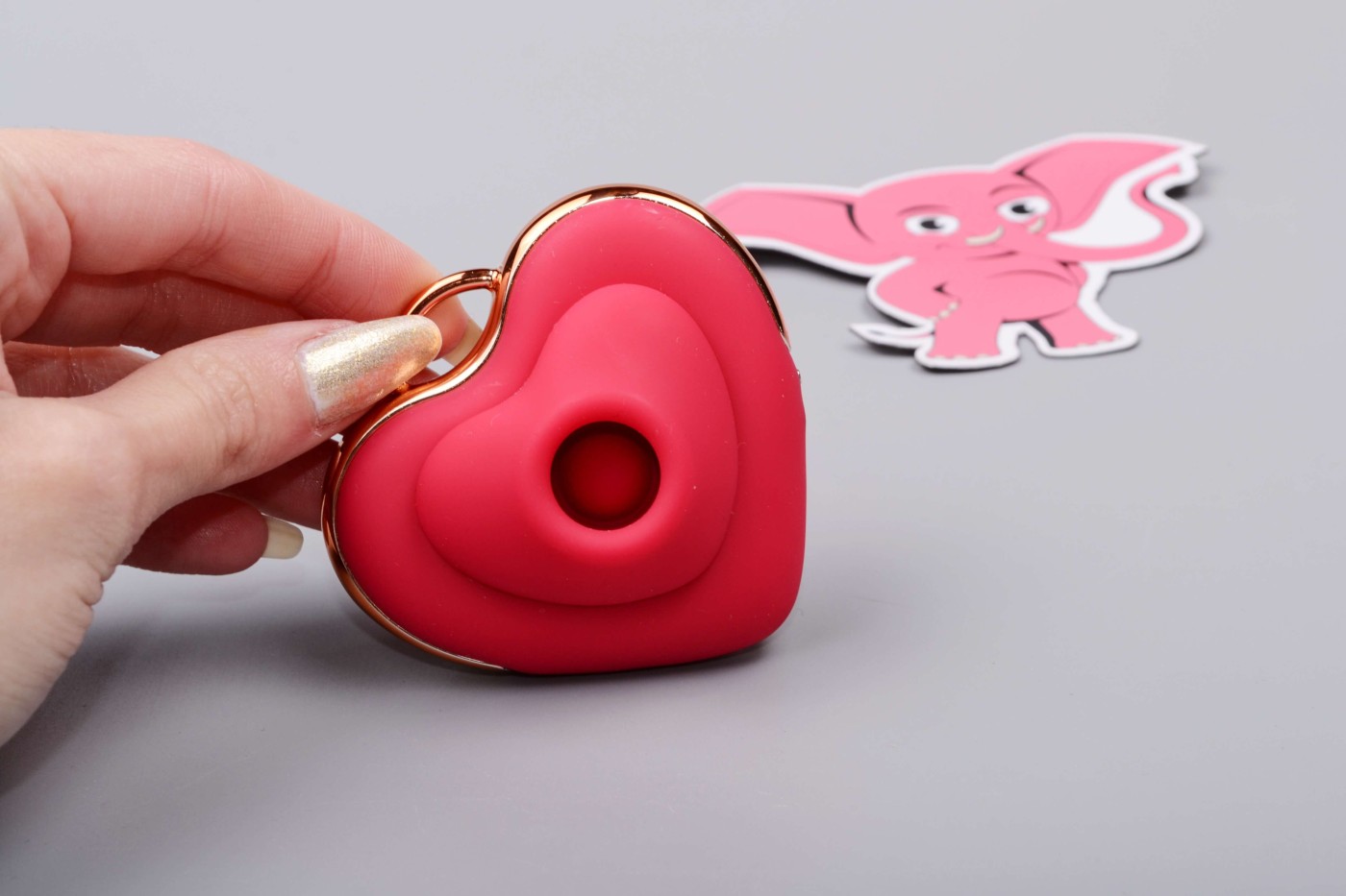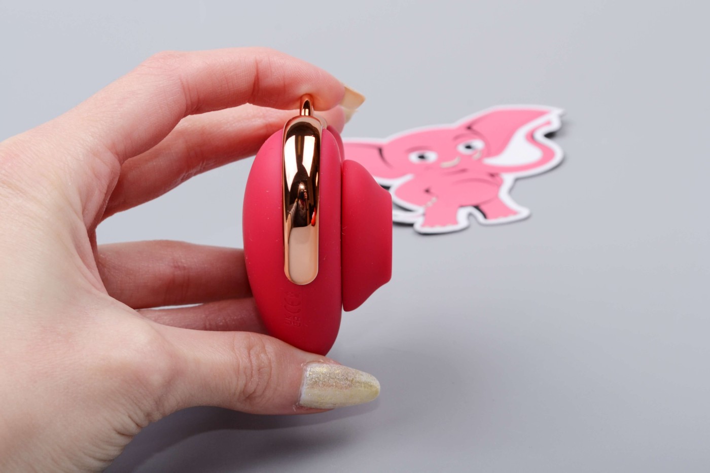 Malý tlakový nástroj v tvare srdca sa zmestí do dlane a vyzerá roztomilo. Zamilujete si ho na prvý pohľad. Kombinácia červenej farby a ružovozlatého lemovania pôsobí luxusne. Vďaka pútku v hornej časti a priloženej šnúrke v balení môžu ženy nosiť prístroj stále so sebou, napríklad na krku alebo v kabelke. Celkovo hračka vyzerá nádherne, a preto ju odporúčame ako darček k narodeninám, výročiu alebo na Valentína.