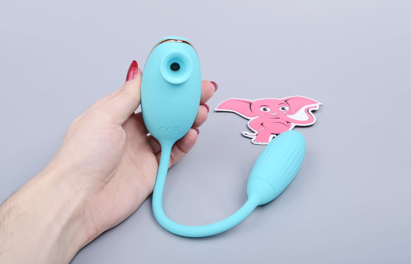 Vibračná pomôcka 2v1 pôsobí exkluzívne a moderne. Jej ovládacia časť s tlakovou hubičkou v nás trochu evokuje vtáčika. Celkovo sa hračka dobre drží v ruke a úzke, oválne vajíčko sa skvele zavádza do vagíny.