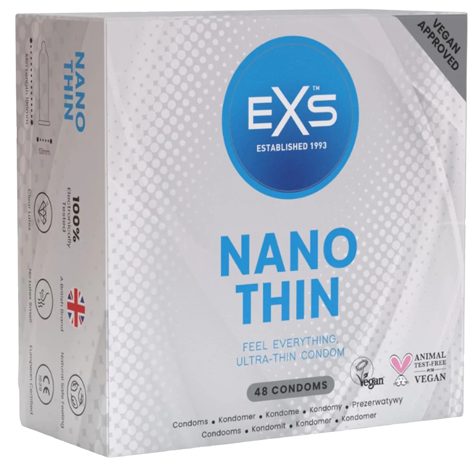 EXS Nano Thin kondómy sú navrhnuté pre tých, ktorí hľadajú maximálnu citlivosť a prirodzený pocit počas intímnych chvíľ. Vďaka extrémne tenkej stene s hrúbkou iba 0,045 mm poskytujú pocit, akoby ste žiadny kondóm nemali, a pritom si zachovávajú pevnosť a spoľahlivosť bežných latexových kondómov. Kondómy nemajú typický zápach latexu, čo zvyšuje komfort pri používaní. Sú testované podľa najprísnejších európskych štandardov a certifikované Britským inštitútom štandardov (BSI), čo zaručuje ich kvalitu a bezpečnosť.