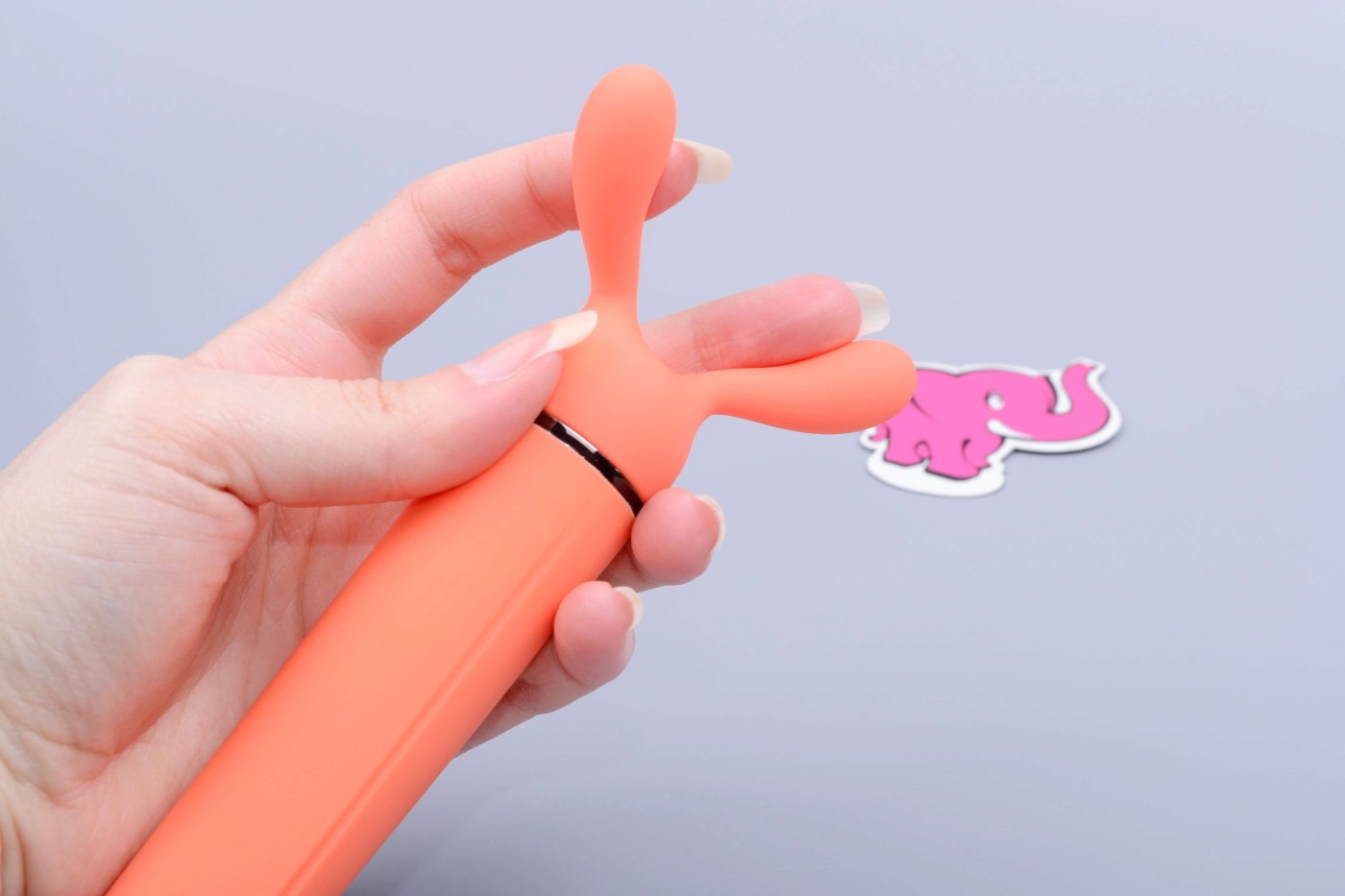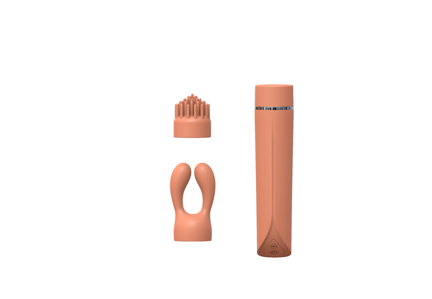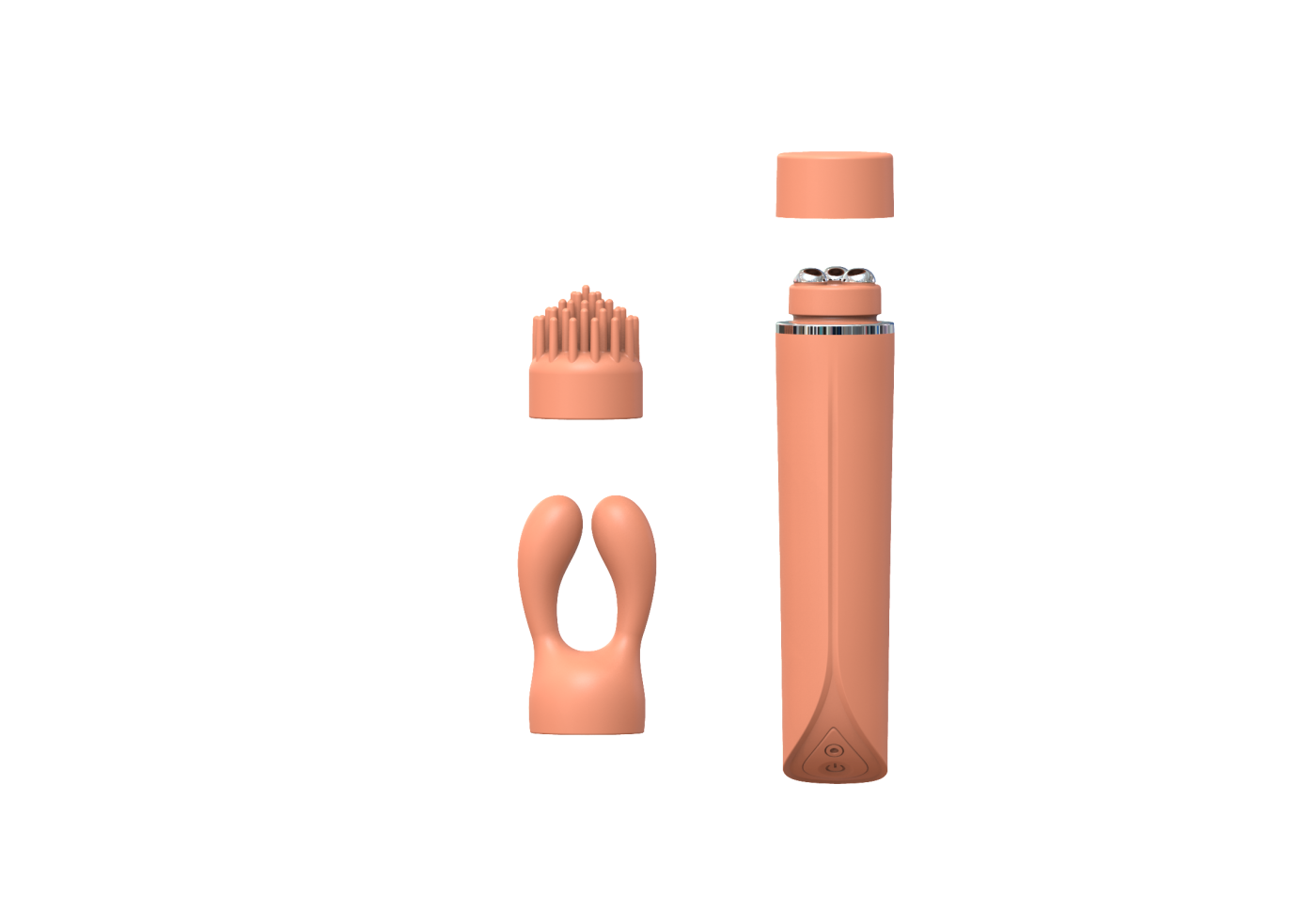 Dlhé, úzke telo vibrátora s rovnou krytkou vyzerá nenápadne a pripomína cestovné balenie parfumu. Dobre sa drží v ruke a vďaka kompaktným rozmerom ho zapojíte do hry v každej sexuálnej polohe. Okrúhly nástavec s mäkkými silikónovými štetinkami pripomína trochu ihelníček. Nadstavec s dvoma zaoblenými výbežkami v nás zase evokuje zajaca a hodí sa na masáž penisu.