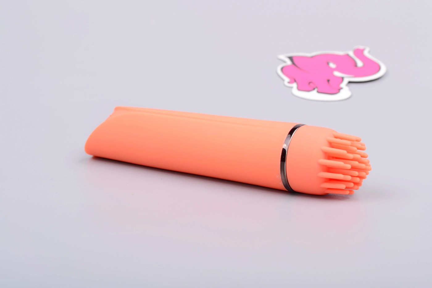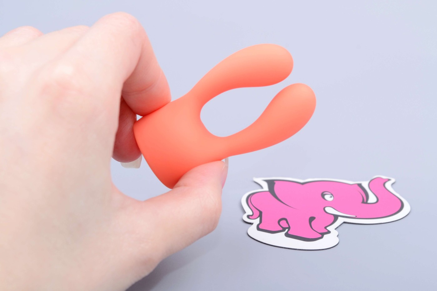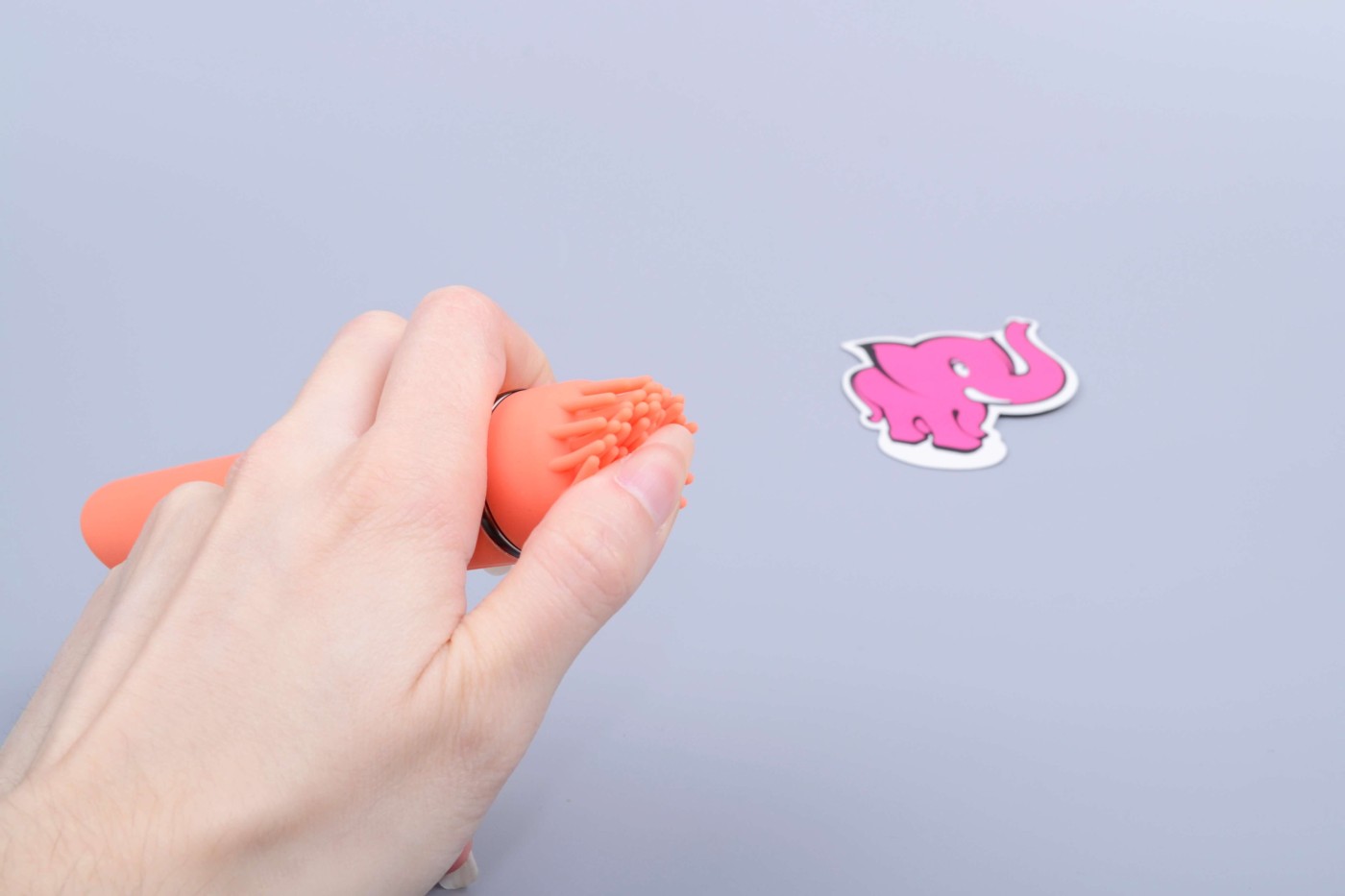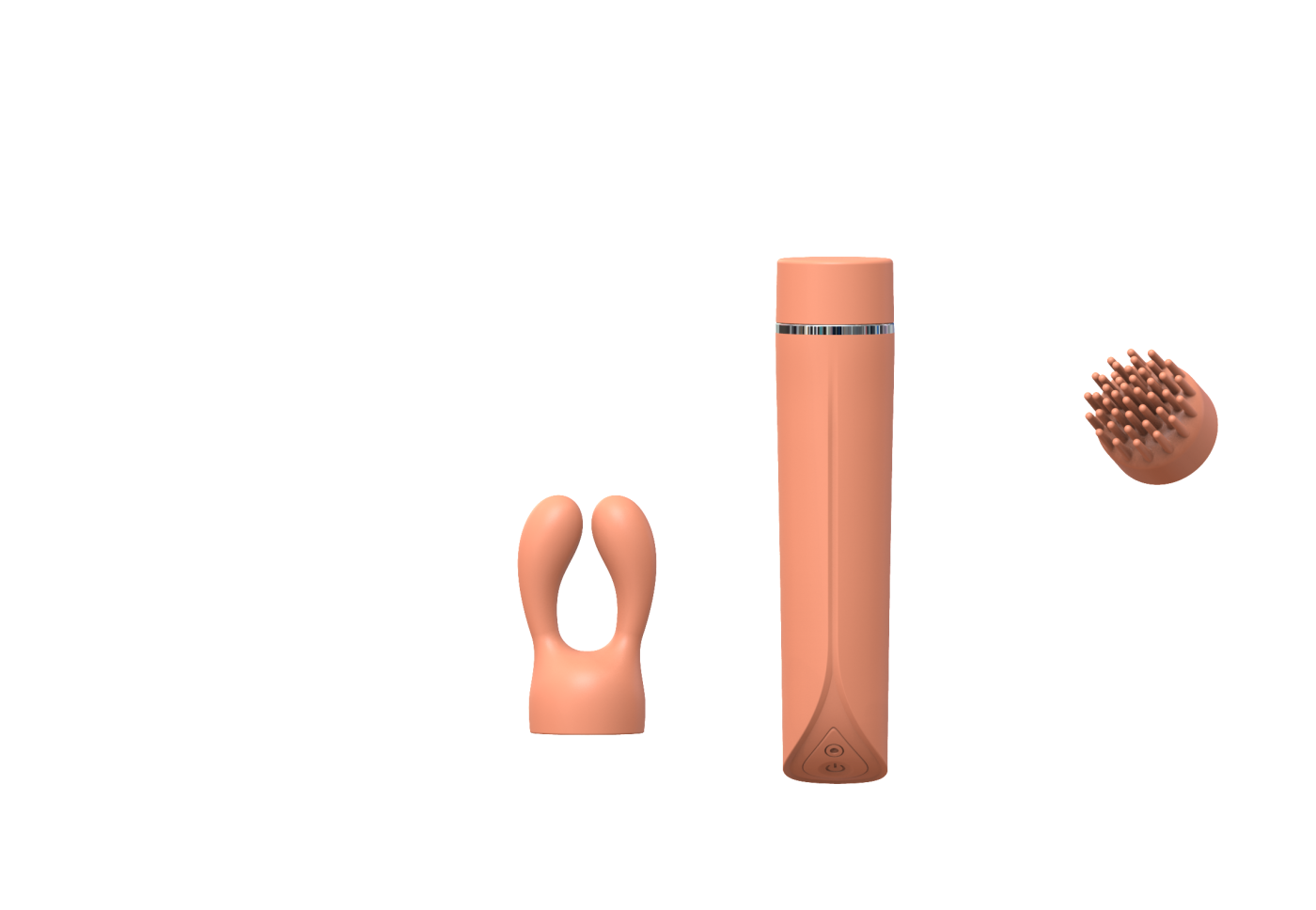 Dlhé, úzke telo vibrátora s rovnou krytkou vyzerá nenápadne a pripomína cestovné balenie parfumu. Dobre sa drží v ruke a vďaka kompaktným rozmerom ho zapojíte do hry v každej sexuálnej polohe. Okrúhly nástavec s mäkkými silikónovými štetinkami pripomína trochu ihelníček. Nadstavec s dvoma zaoblenými výbežkami v nás zase evokuje zajaca a hodí sa na masáž penisu.