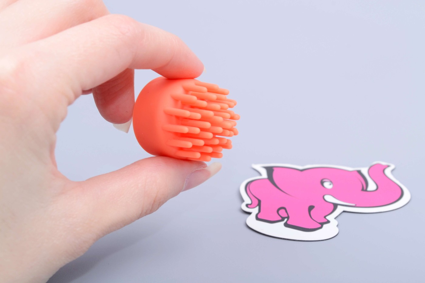 Pevné telo z odolného ABS plastu je potiahnuté vrstvou zamatovo hebkého silikónu, ktorý má hypoalergénne a neporézne vlastnosti. Preto sa často používa aj v lekárstve a kozmetickom priemysle. Kovové hrbolčeky príjemne hladkajú na koži.