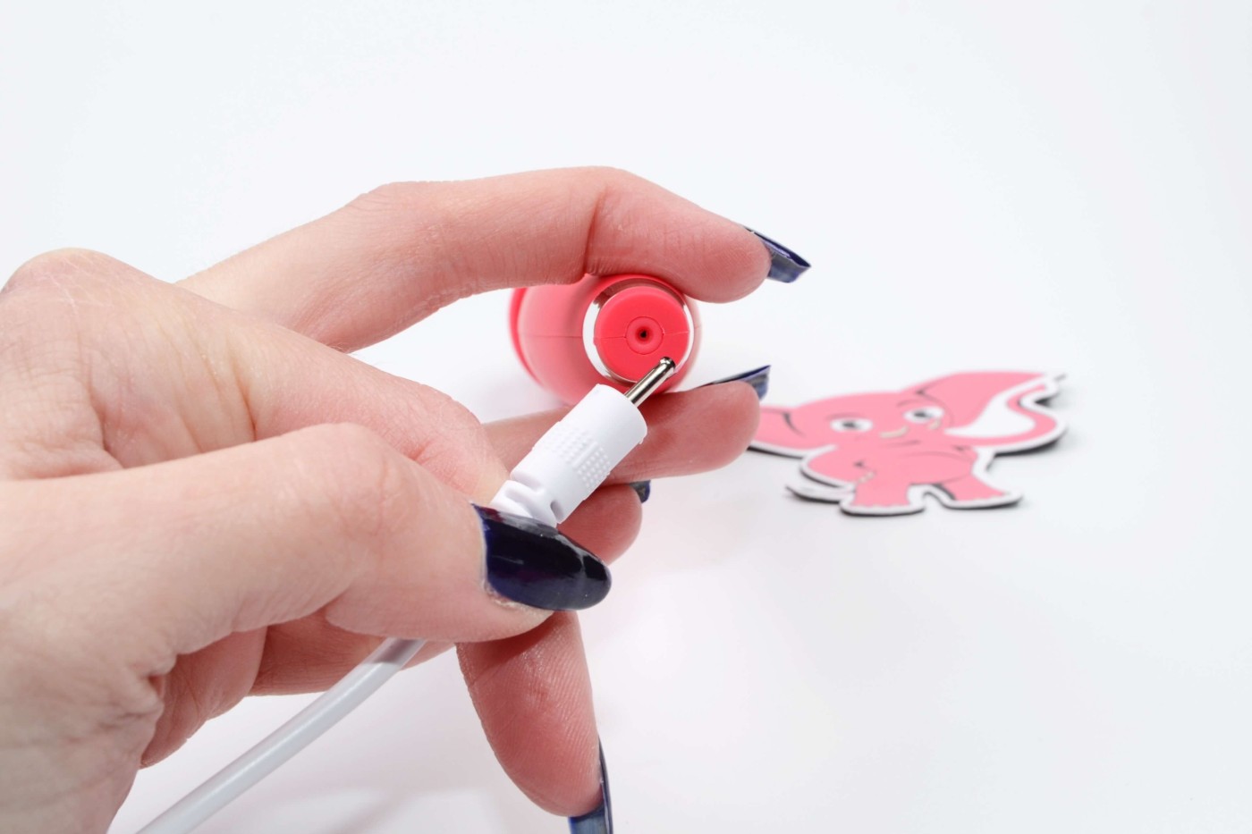Masážna hlavica sa k vám domov dostane približne v 1/2 nabitá. Pred prvým použitím ju odporúčame nabiť na maximum. Predĺžite tým životnosť batérie a výdrž akumulátora. Nabíjanie hračky trvá približne 2 hodiny a počas tejto doby blikajú kontrolky pod ovládacími tlačidlami. Po skončení nabíjania kontrolky zhasnú. Hračka môže vibrovať približne 1,5 hodiny na jeden záťah.