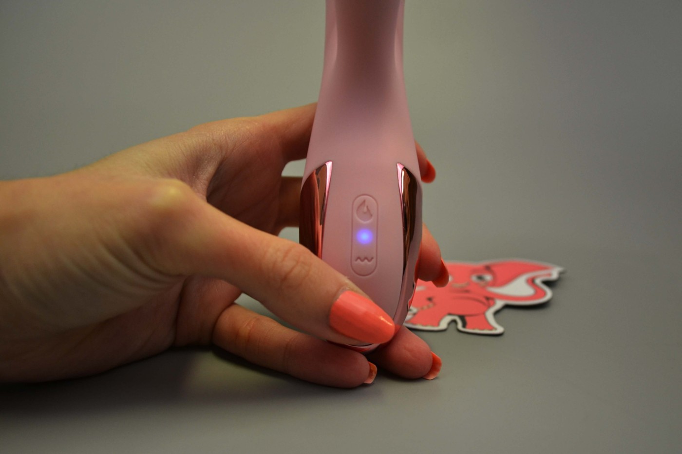 Jemná ružová farba v púdrovom odtieni pôsobí nežným dojmom a naladí vás pri intímnych chvíľkach na vlnu rozmaznávania a rozmaznávania. Zdobenie na rukoväti evokujúce ružové zlato dodáva pomôcke punc luxusu.