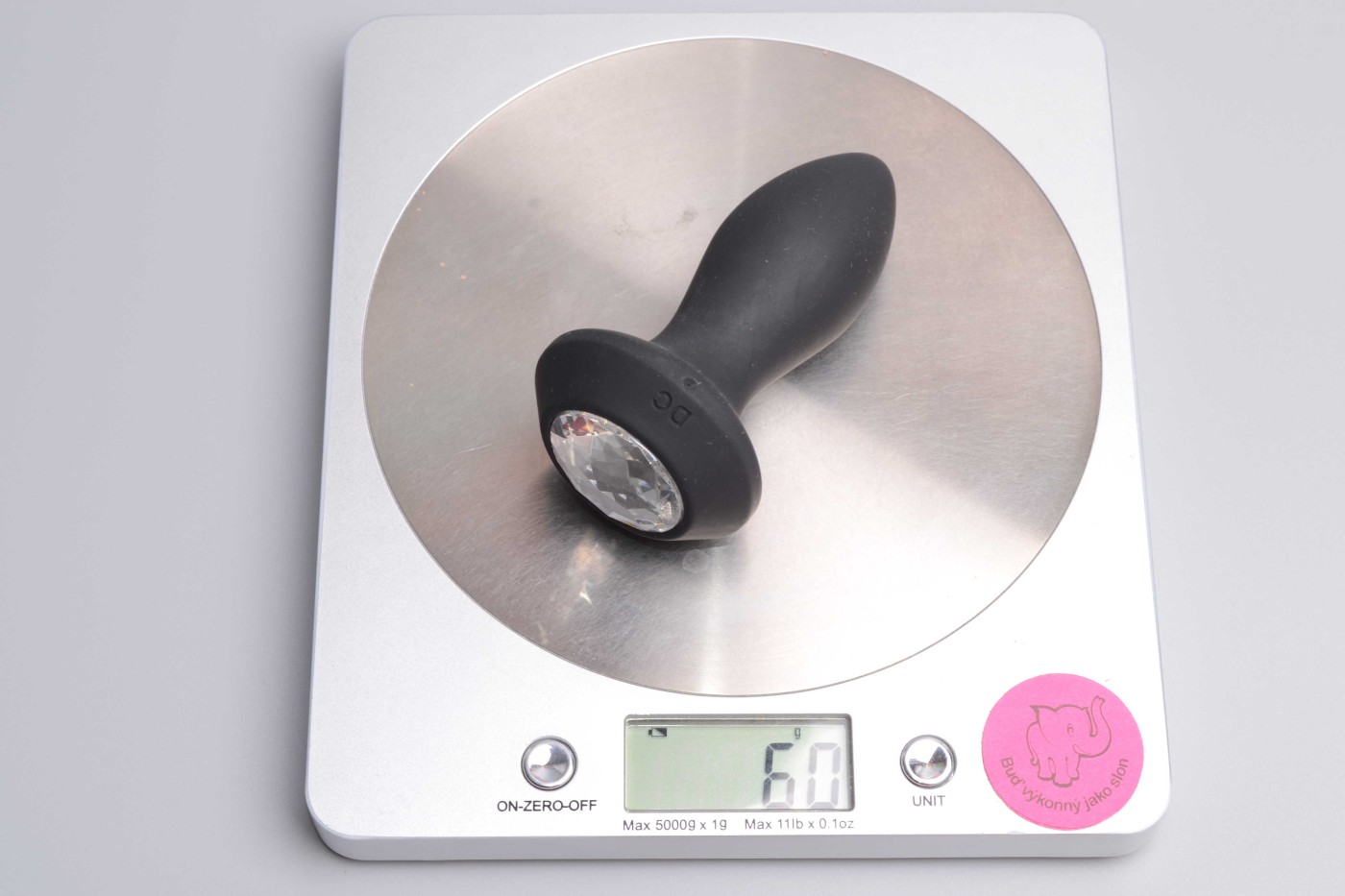 Čierny, ergonomicky dobre tvarovaný kolík, s trblietavým diamantom v spodnej časti, pripomína vesmírnu raketu. Menšia aj väčšia veľkosť sa vďaka výraznej pätke dobre drží v ruke, parádne sa zavádza a v análiku nikde netlačí. Elegantný dizajn láka oči aj ruky na preskúmavanie a hladenie.